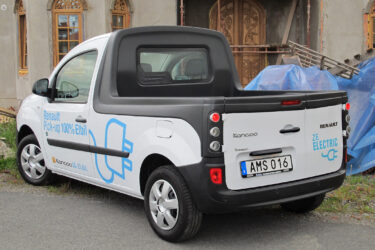Elbilen är populär bland montörerna. De tycker den är kul att köra. Eftersom batterierna sitter under bilen så inkräktar de inte på utrymmet. Den eldrivna Kangoon har samma inredning som sina dieseldrivna syskon i företaget och lastar lika mycket – tre kubikmeter och 595 kilo nyttig last.