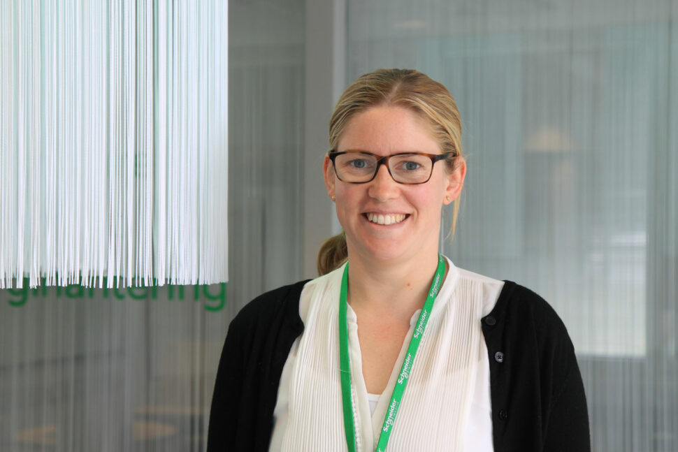 Sandra Jonsson arbetar på en avdelning inom Schneider Electric som fokuserar på att coacha projektledare, utveckla processer, verktyg och samverkan mellan olika teknikområden. Det handlar bland annat om att hjälpa kunderna minska sin miljöbelastning.