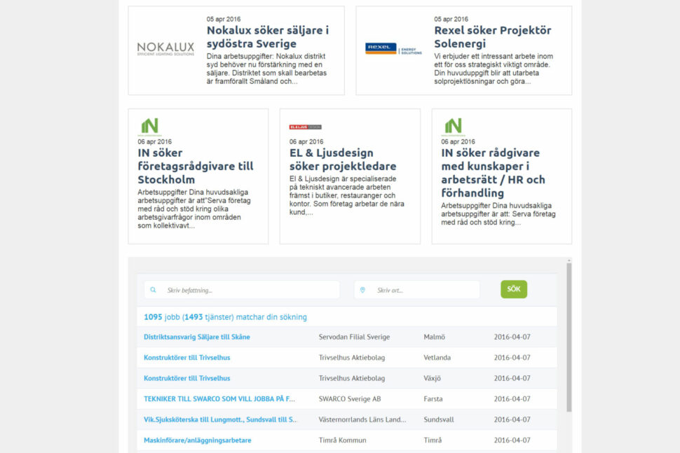 Den stora nyheten med Elinstallatörens nya jobbsajt är samarbetet med tjänsten Oxojob vars spindel skannar av Sveriges jobbsajter och samlar ihop alla jobbannonser som är relevanta i just elteknikbranschen. Det har ingen betydelse om annonsen först var publicerad på Arbetsförmedlingen eller Monster, den kommer ändå sammanställas i Elinstallatörens sökbara gränssnitt. Till exempel kan man just nu hitta 31 annonser för arbetsgivare som söker elmontörer