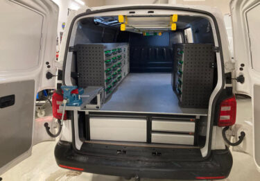 – Vi har också fokus på säkerhet – det är viktigt att tunga saker kan lastsäkras i skåpet för att inte flyga iväg vid en kraftig inbromsning eller kollision. Vi gör heller ingen skillnad på säkerheten i person- och lätta lastbilar. Det är lika viktigt i bägge biltyperna. Den tid som läggs ner på planering av skåpinredning och säkerhet sparas in eftersom varje anställd då får den arbetsplats de har behov av.