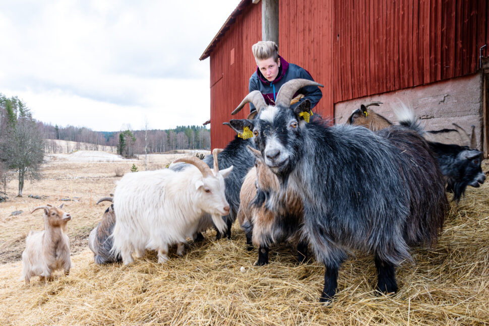 När vi smort kråset är det utedjurens tur. Elva afrikanska dvärggetter och en kacklande hönsflock utfordras, och Cecilia passar på att vittja ett rede. Åtta ägg blev det.
