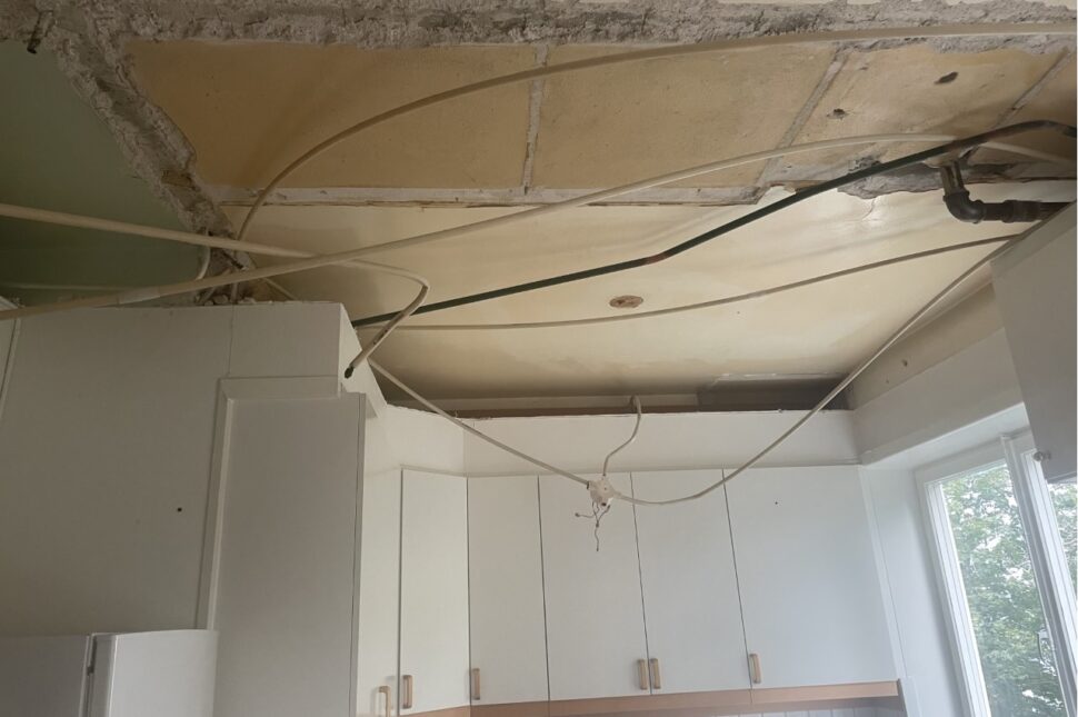 I stället för att riva mer åtgärdades elen med hjälp av nya kabeldragningar – till alla eluttag och strömbrytare i kök och hall samt mellan elcentralen och de matande grupperna. Enligt Viktor Sievertz räcker det för att göra elen säker i lägenheten. Den felande dosan är urkopplad.