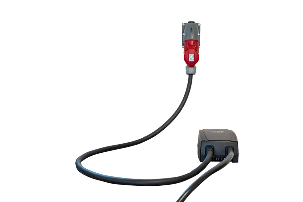 Den här laddaren kan hängas på väggen där hemma eller på jobbet, men den kan också tas med på resan. Den har en fast 1,5 m lång elkabel för anslutning till 16 A CEE trefasuttag och en fem meter lång laddkabel.