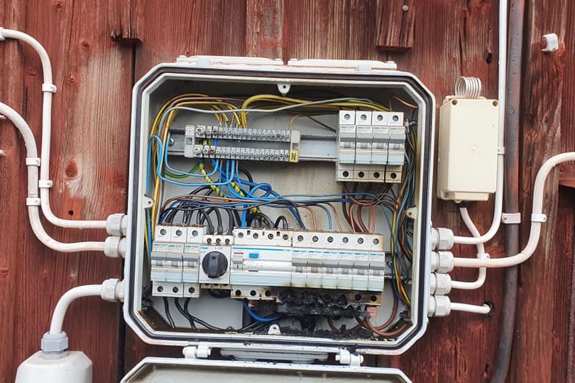 En skrämmande syn mötte elinstallatören som öppnade utecentralen på en ladugård. Fasskenans plast hade smält och förvandlats till kol. Var orsaken kondens, eller borde det ha funnits en trepolig säkring?