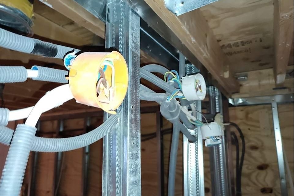 Stefan Zäll har nu påbörjat åtgärderna i lokalen. Det blir byte till flexslang med fördragen kabel och rätt muffar samt nya, rätt installerade kopplingsdosor. Biledarna var egentligen en bisak, men för säkerhets skull skarvas och ansluts de.