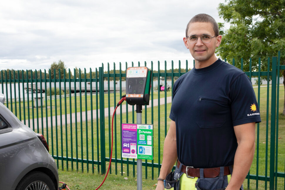 Elfordon som laddar i kommunala laddstolpar i Karlstad fastnar ibland. Vi ställer tre frågor till Fredrik Skoglund, som är elmontör på Karlstads El & Stadsnät.