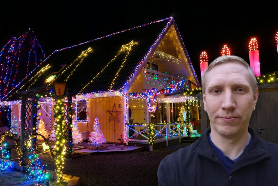 Att bjuda på ljusshow har blivit en kär jultradition för Niklas Adolfsson i Hällestad i Östergötland. I år smäller han upp fler än 33 300 lampor på familjens villatomt. Elnotan oroar honom inte, trots skenande elpriser.