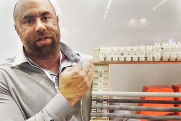 På Elfack visade Wiha upp sin nya verktygsryggsäck för första gången. Många elektriker jobbar numera med solceller uppe på tak, cyklar eller åker motorcykel. Då kan det vara praktiskt med en bärbar verktygslåda med en stabil botten, tycker Jimmy Engvall, Key Account Manager på Wiha, som presenterade produkten i företagets monter.