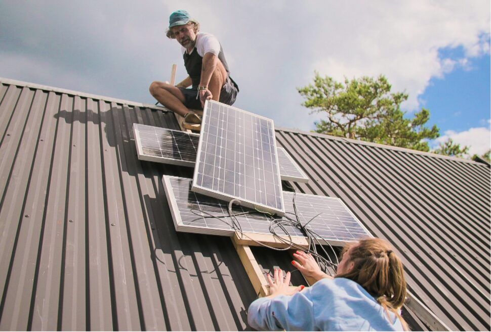 I programmet den 7 augusti kopplar pappan Kalle Zachari Wahlström ihop ett gäng begagnade solpaneler och sätter upp på ett stugtak. MPPT-regulatorn placeras på väggen utomhus och han drar kablar genom väggen till växelriktaren. ”Det är sjukt lätt, för lätt” kommenterar han.