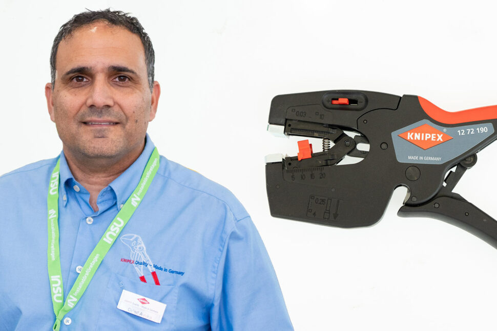 Klippa, skala och pressa ändhylsor med samma verktyg. Enligt Knipex marknadschef Oded Avuka är det elektrikerna själva som efterfrågat deras kombinationstång som gör tre olika moment.