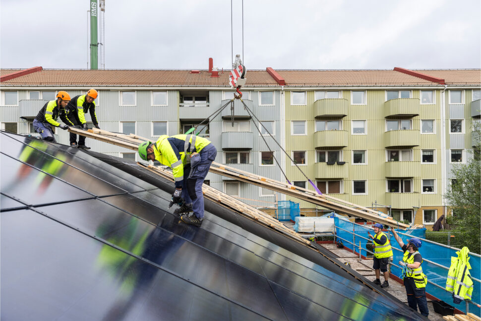 – Genom att företagets modulära solcellstak lyfts på plats med en kran, innebär metoden en stor förbättring av arbetsmiljön för installatörerna som nu helt slipper lyfta tunga solcellspaneler.