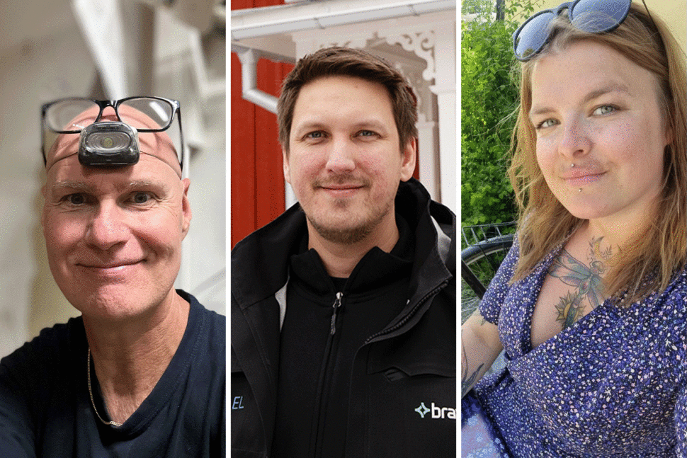 – Vi (Bravida) har gjort en riskanalys, där vi har gått igenom riskerna med att ha på sig kortbyxor. Vi kom fram till att vi kan ha shorts eller piratbyxor för de jobben vi gör. Jag personligen använder piratbyxor, eftersom jag måste ha, och kan inte jobba utan knäskydd. Annars svettas man ihjäl i vanliga arbetsbyxor. I övrigt brukar jag ha på mig t-shirt och skor som har lite ventilationshål. Det funkar, men man blir ju svettig i alla fall. Man får dricka mycket vatten, äta glass och ta mikropauser i skuggan.