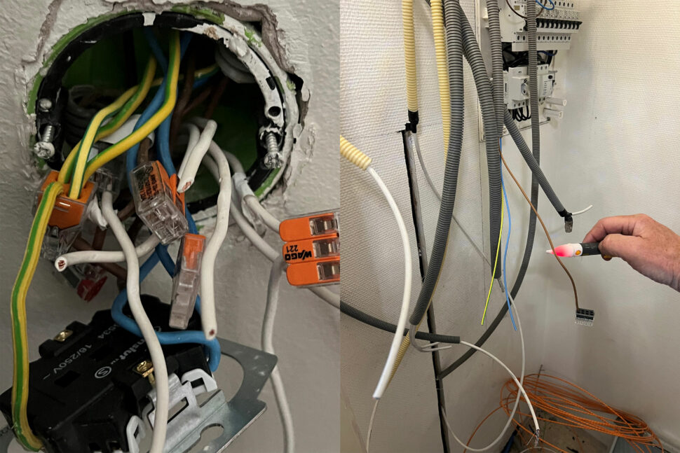Arbetet med att byta vägguttag och dra om kablar uppdagade fel efter fel. I några uttag fanns mellan åtta och tio vita kablar för trapptändning. Oklart vart varje kabel gick, och ett mysterium hur så många kablar rymdes i en 16 millimeters slang.