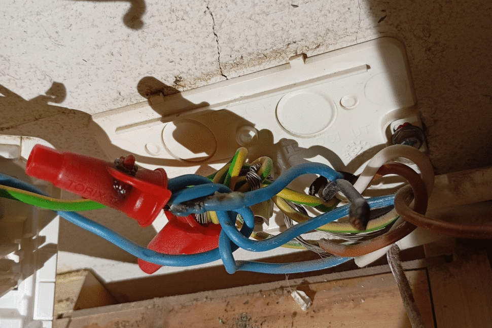 Serviceelektrikern Fredrik Appelberg skulle installera ny köksbelysning hos kunden. Han behövde dra fram en ny kabel och gick via en dosa på väggen. När han öppnade dosan upptäckte han en härva med smälta kablar, toppat med torix toppklämmor.