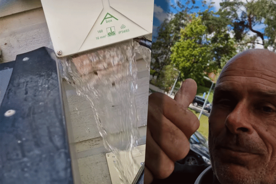 Han gick ett varv på utsidan och fick syn på en dosa som han misstänkte att vattnet kom ifrån. När han lossade på skruvarna till doslocket började det forsa ut vatten.