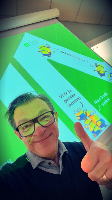 – Sedan älskar jag att göra bra presentationer till möten. Jag lägger in oväntade bilder eller filmer som man kan diskutera kring och som skapar wow-faktor. Jag gillar att fotografera själv men senaste året har jag också använt Copilot och Chat GPT för att skapa. Jag kombinerar ofta bilder som i en gammal klippbok, lite foton som jag tagit själv och så lite AI på det. Jag ser helst inte att presentationer är en Power Point med fem punkter svart text mot vit bakgrund, det är inte min grej.