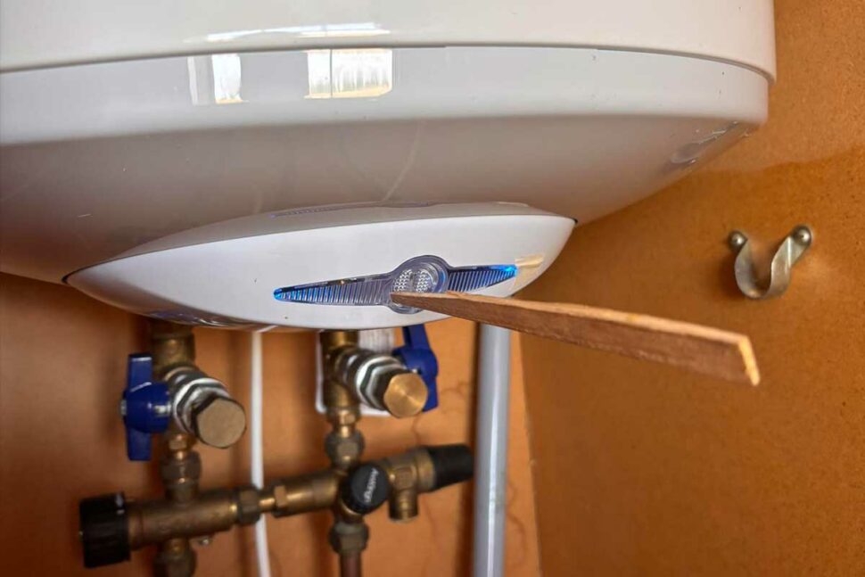 I stället för en tryckknapp för att starta varmvattenberedaren hade kunden satt dit en träpinne, för att den skulle fungera.