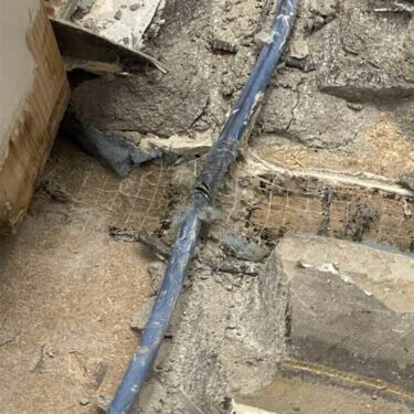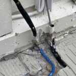 Här har avloppen hamnat för nära väggen. Åtgärden har blivit att flytta ut avloppen och vid borrningen har värmekabeln träffats och gått av på flera ställen.