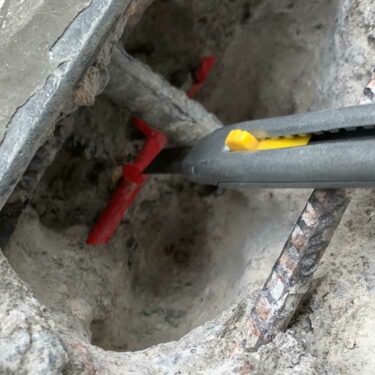 Här har det blivit fel i en lastkaj utomhus. En röd värmekabel av god kvalitet har gjutits in, vilket är bra. Problemet är att den förlagts 20 centimeter ner, inträdd mellan armeringsjärn och svåråtkomlig. Rätt placering ska vara på överkantsarmeringen, enligt Anders Eriksson.