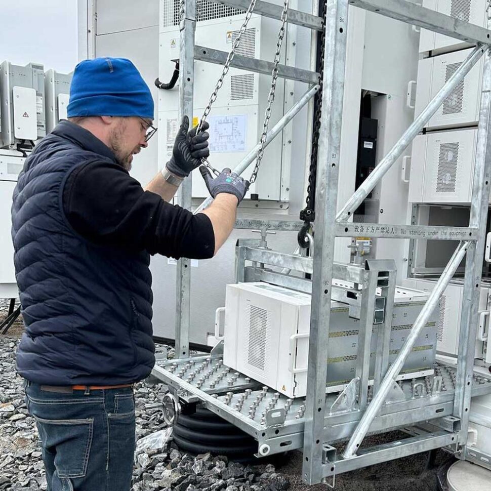 – Batteriparker är roliga, eftersom det är något annorlunda. Vanligtvis jobbar jag med kablar på 1,5 kvadrat, men i parkerna jobbar man med kablar på 240 och 400 kvadrat. Man får ta i på ett annat sätt och göra egna beräkningar på kablage. Annars tycker jag att det är trevligt med alla typer av jobb och man hinner inte tröttna på någonting.