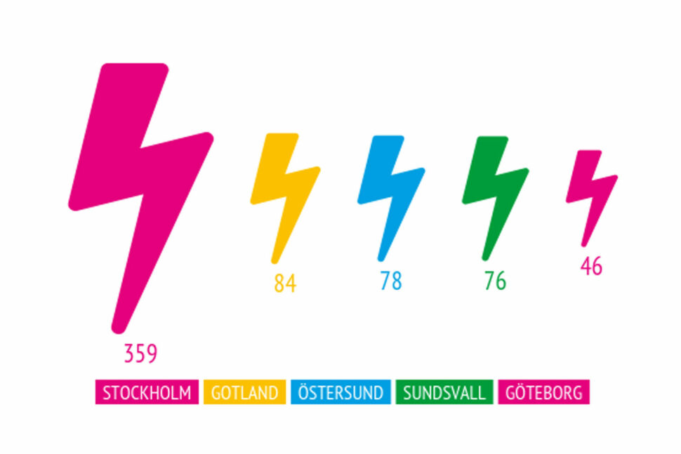 Fördelningen av publika laddpunkter i landet är mycket ojämn. Stockholm som har flest laddbara fordon har också flest laddpunkter, 359 stycken. Det är ingen storstad på andraplatsen utan Gotland med 84 laddpunkter. Östersund kniper tredjeplatsen med 78 publika laddpunkter.