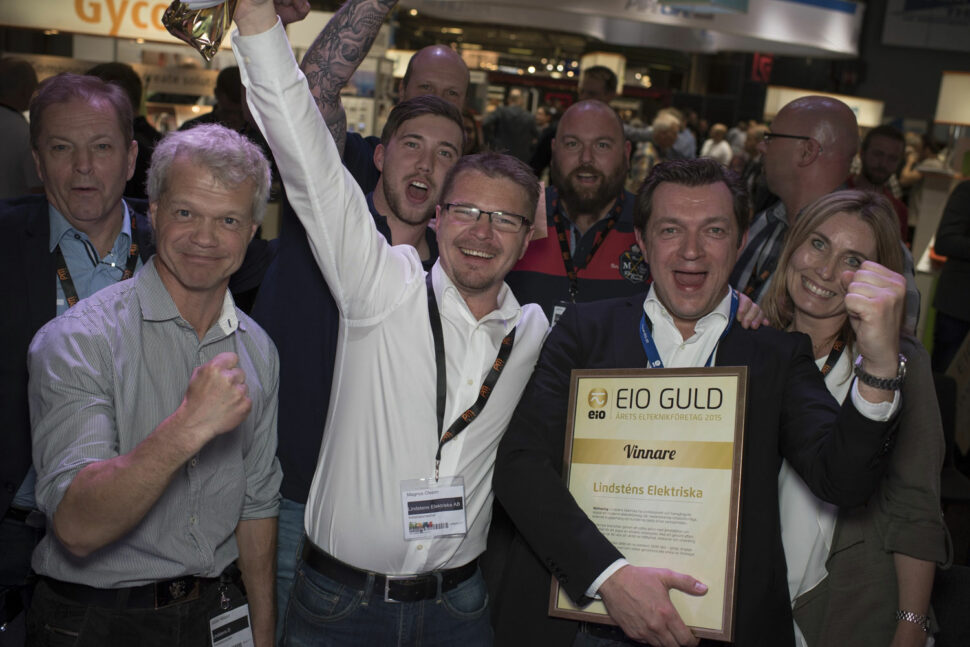 Fem företag hade nominerats som finalister i EIO Guld – Årets elteknikföretag 2015. Vid prisceremonin på Elfacks tredje dag stod Lindsténs Elektriska som vinnare. Vd Johnny Petré fick motta diplom, glasskulptur och en utbildningscheck på 50 000 kronor. Han kallade upp ett gäng medarbetare på scenen och förklarade varför: