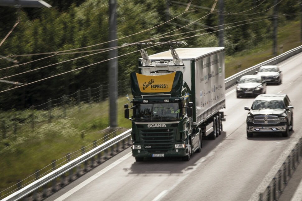» Om elen matas från en elväg kan batterierna laddas medan bilen kör. Då kan fordonet ha mindre batterier, och även tunga fordon kan gå på el.