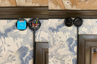 Elcentralen har också fått en kulturanpassad placering – inne på en toalett i mitten av restaurangen. I ett stort väggskåp med hänglås finns dataracket för musiken, en smarthögtalare och de fyra kopplingsgrupperna ut till anläggningen. Här finns även en Plejd-puck med ingång för rörelsevakt och för styrning. Bredvid sitter elskåpet där servisen kommer in.