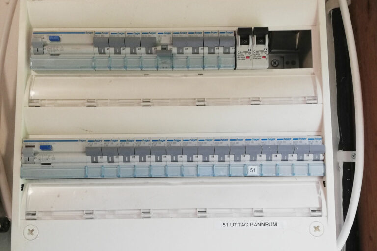 Jordfelsbrytaren hade blivit vattenskadad. Elektrikern Johan Eriksson bytte den, men nöjde sig inte där. Hur hade vattnet runnit in i elcentralen?