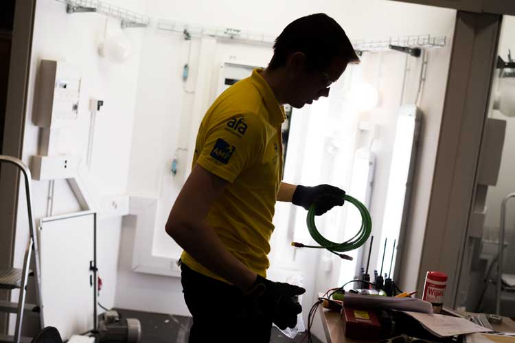 Rutinerade Johan Ledin var en av få tävlande i elinstallation som sparade centralbygget till slutet. Oscar Sjögren svenska elteknikexpert: “Sista dagen, när det var dags för driftsättning och programmering, märktes det att uppgiften var svår.”